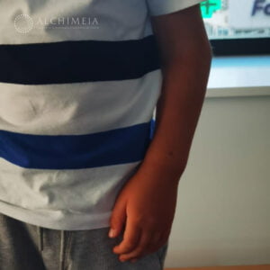 În imagini se observă progresul făcut de N. după doar 10 ședințe de kinetoterapie, mobilitatea cotului fiind îmbunătățită considerabil, la fel și funcția musculară. În prezent, N. continuă terapia în clinica Alchimeia.